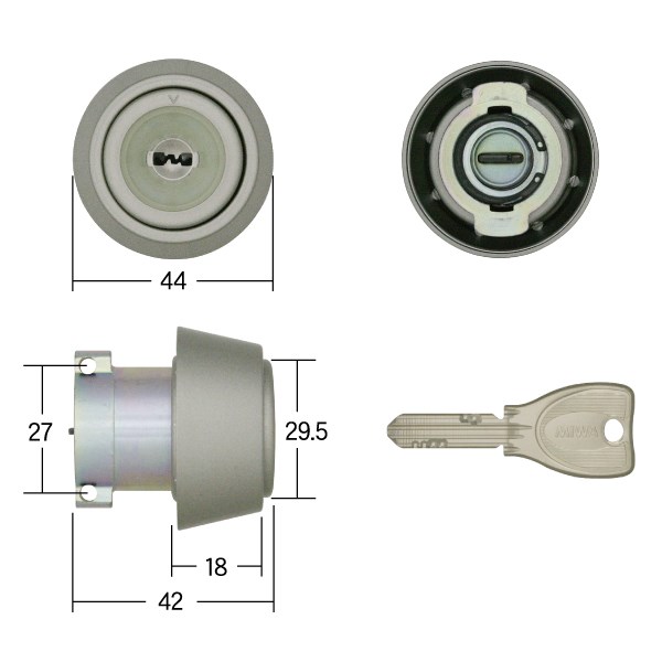 ミワ PSLA(DA)シリンダー 2ヶ同一 シルバー色 キー5本付 蓄光